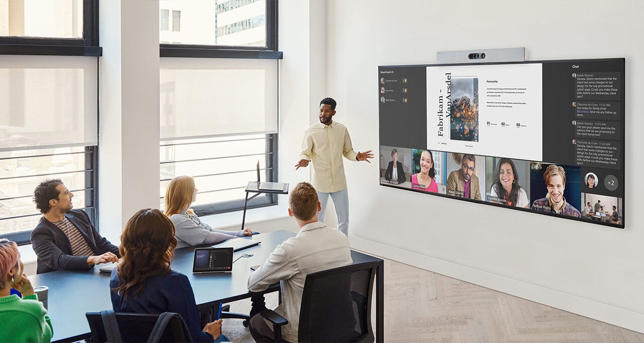 Integrated room system with multi-lens camera, advanced audio system, room codec, integrated mounting options, and premium frame design. Form factor |