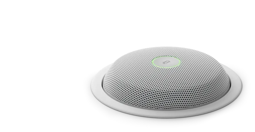 Requires connecting with external Cisco or third-party microphones. Connects with 8 IP mics, 4 analog mics (Euroblock), or DSP over USB-A. Microphones |
