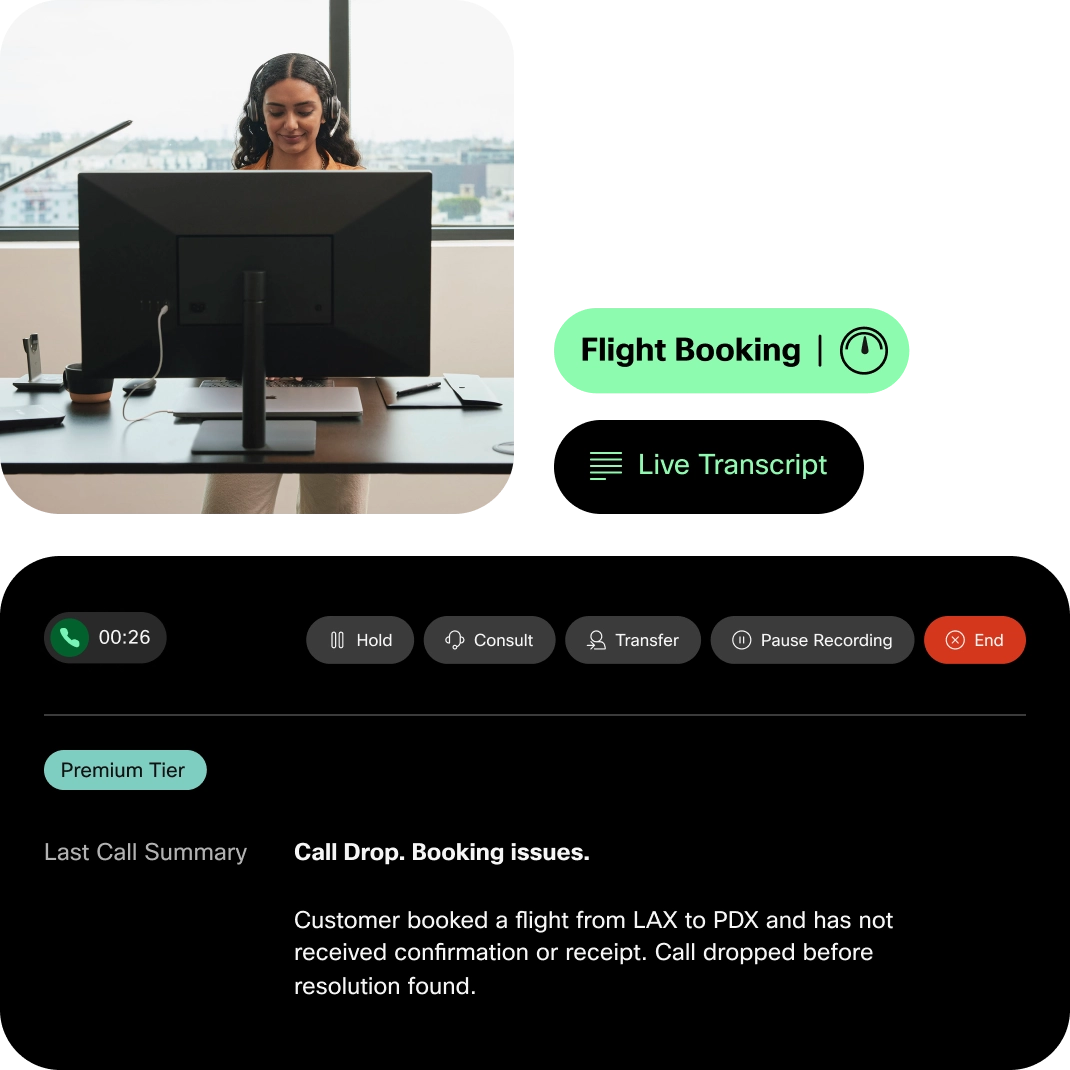 Everything your agents need, all in one place. Whether answering calls, chatting with customers, or viewing detailed journeys, agents have AI-powered tools to deliver fast, efficient, and effective customer experiences.