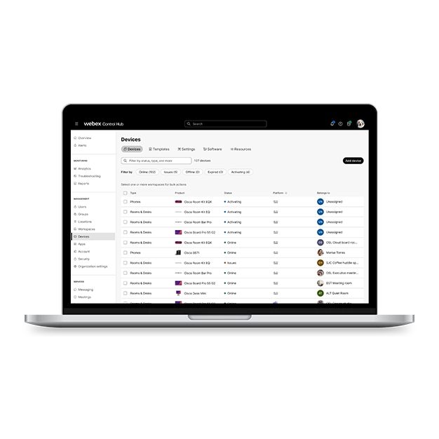 Visualize and remotely manage your Cisco devices and third-party peripherals, benefit from rich analytics and integration APIs, and ensure workspace readiness.