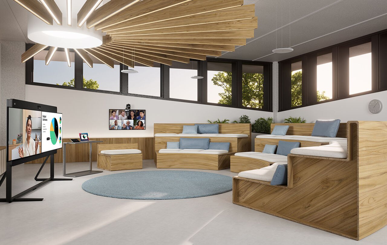 Reimagine your community spaces with an integrated solution that features all your essential conferencing devices and AV mounting while giving you the choice to use external screens up to 85 inches.
