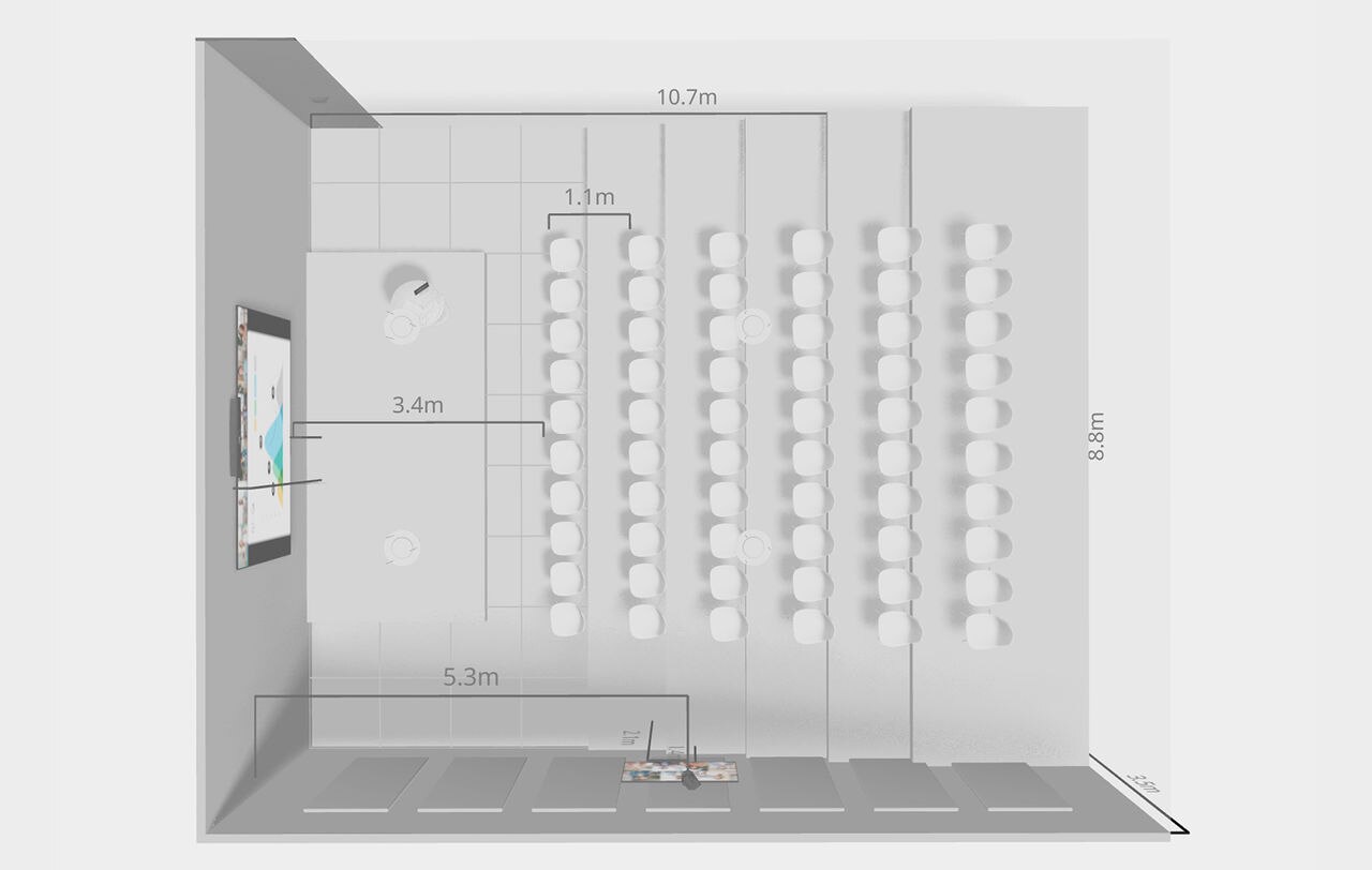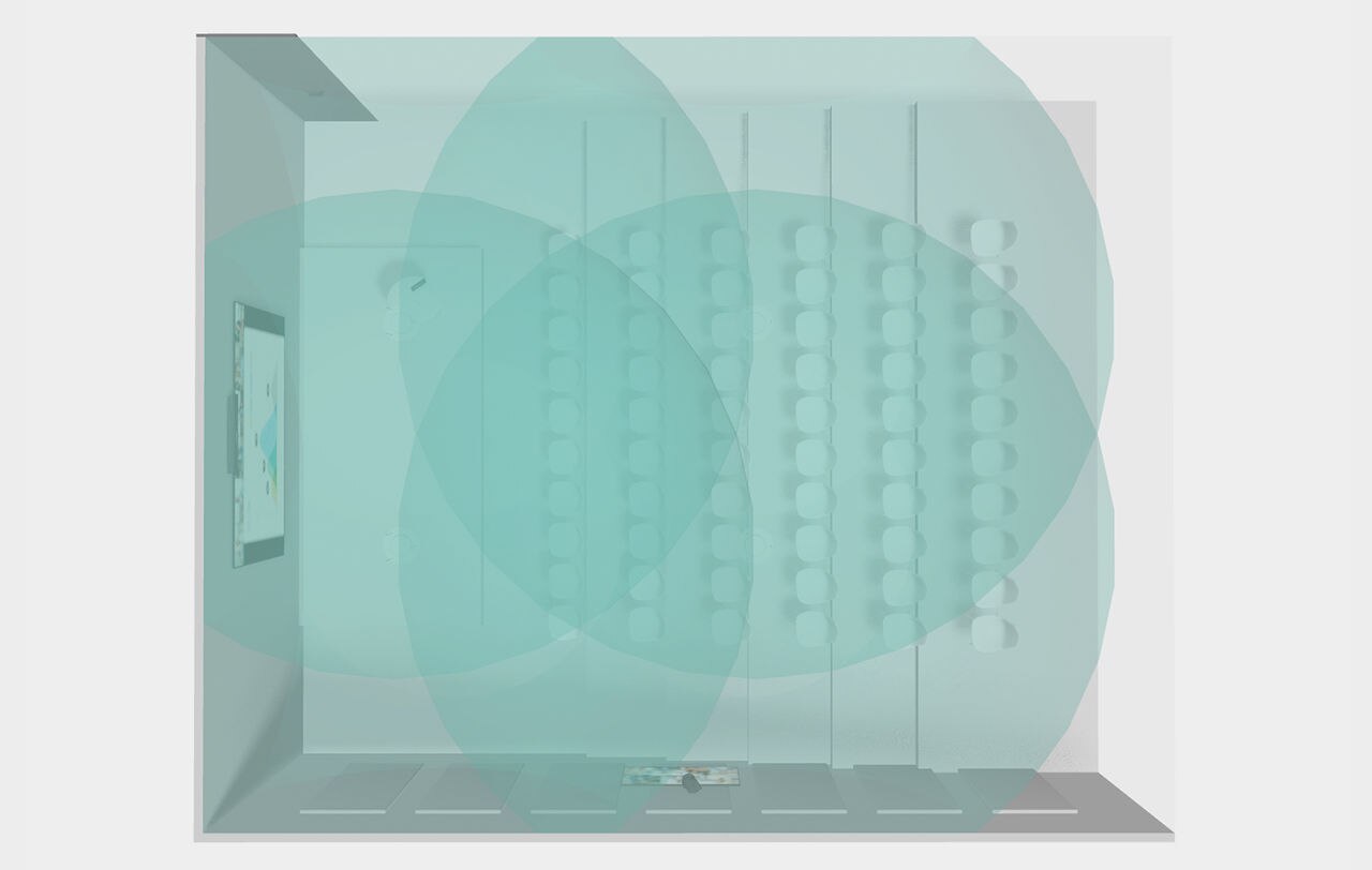 With the latest generation of flexible, plug-and-play IP-based directional microphones, both presenters and the in-room audience can be confident that their voices are heard clearly. Eight adaptive microphone beams work together with advanced AI to automatically follow room dynamics and pick up high-fidelity voice from the active presenters or the audience while blocking out excess noise from other parts of the room. And thanks to adaptive beamforming, there’s no need to reconfigure the microphones manually when the table arrangement or room furniture design changes.
