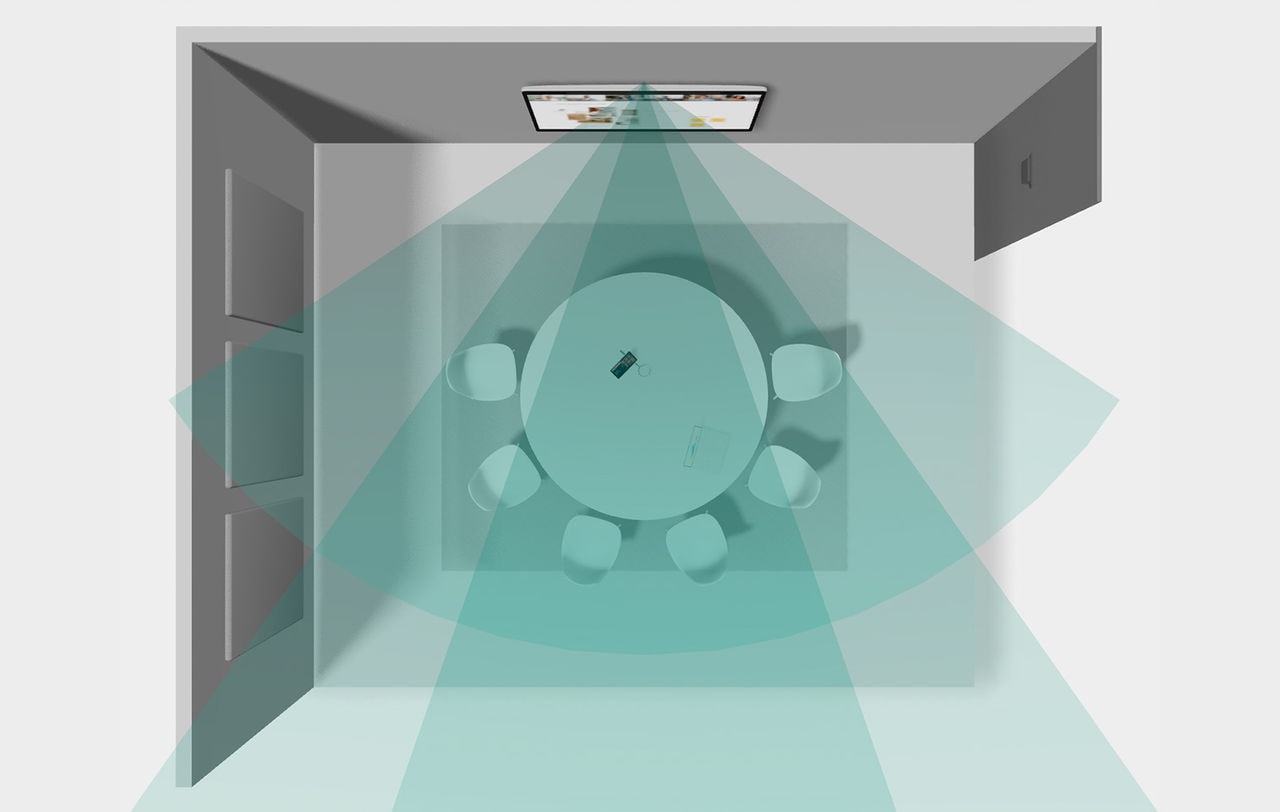 A wide-angle lens, a far-reaching tele-lens, and AI virtual zoom enhancement work seamlessly together to capture and frame all participants in the room. To support inclusive presentations, the setup can be extended with a PTZ camera for dynamic, optimized presenter views.