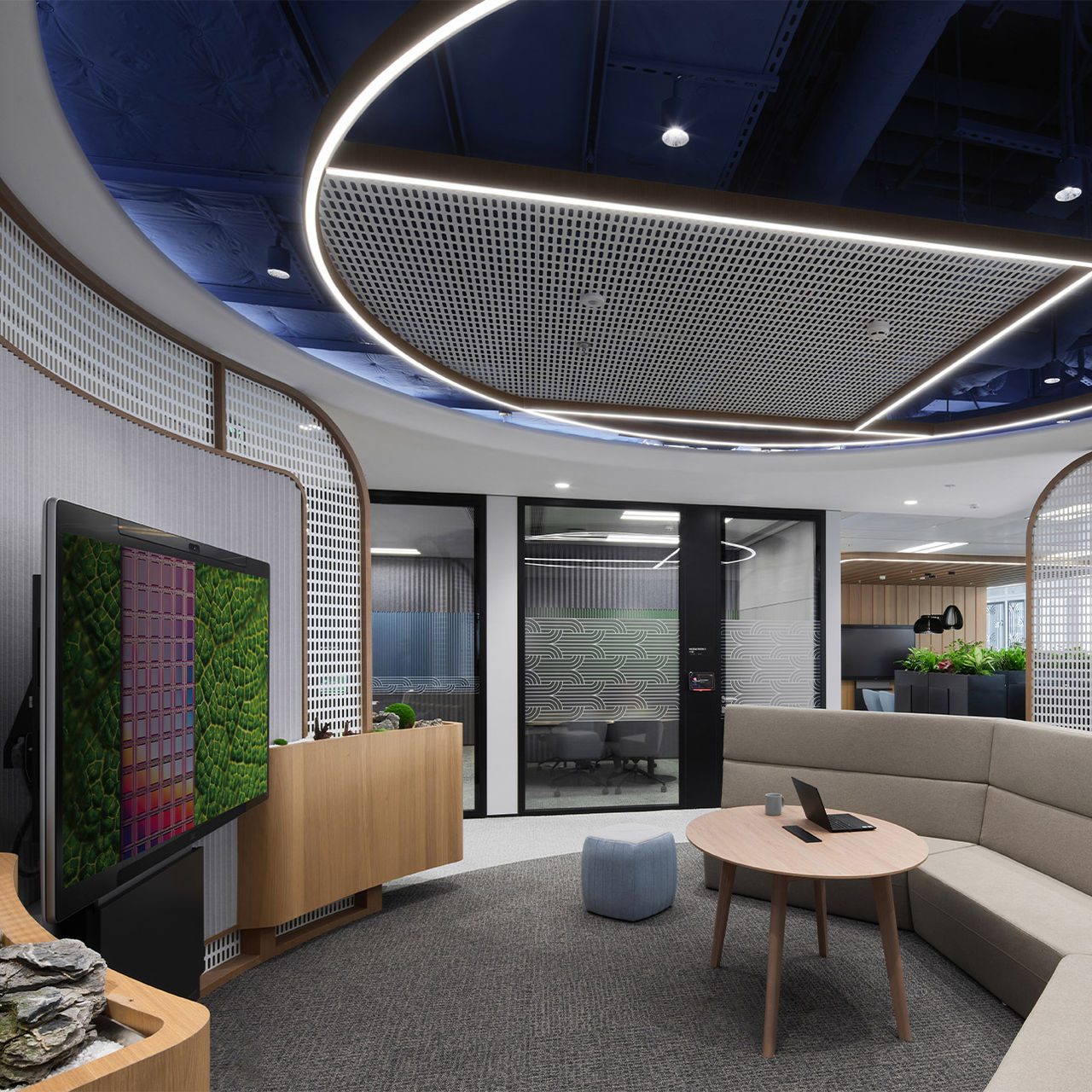 Floor and wall mount options, a 55” integrated touch screen, casual soft furniture and ample space around the device allows in-room participants to ideate seamlessly.